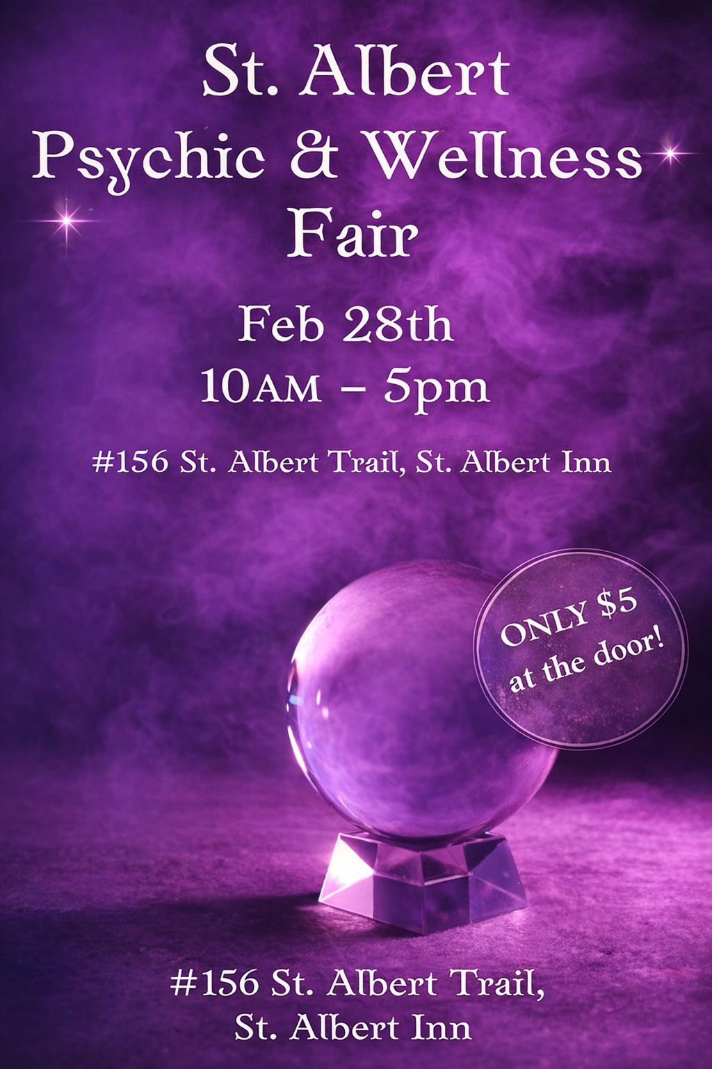 The St. Albert Psychic & Wellness Fair brings together over 65 incredible vendors offering psychic readings, mediumship, holistic healing, handmade goods, crystals, candles, jewelry, clothing, and so much more. Whether you’re seeking clarity, guidance, or simply a beautiful day out, there is something here for everyone.